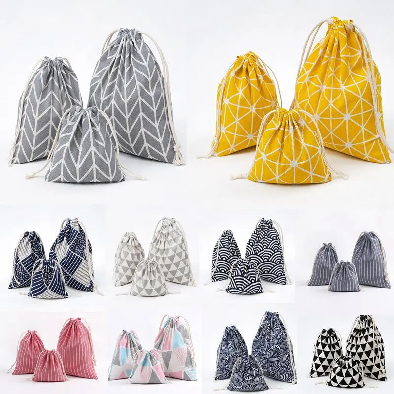 استعارات ل 1 قطعة هندسية عيد الميلاد الرباط القطن الكتان حقيبة التخزين هدية الحلوى مجوهرات المنظم ماكياج التجميل عملات مفاتيح أكياس 49273