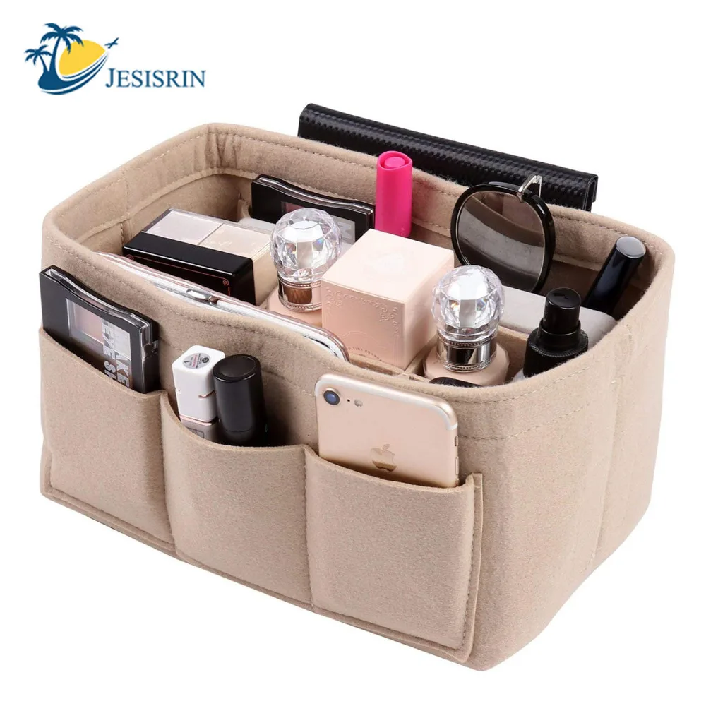 معلومات اضافية ورأى القماش إدراج تخزين حقيبة ، ماكياج التخزين المنظم متعددة جيوب يناسب في يد التجميل حقائب أدوات الزينة للسفر المنظم
