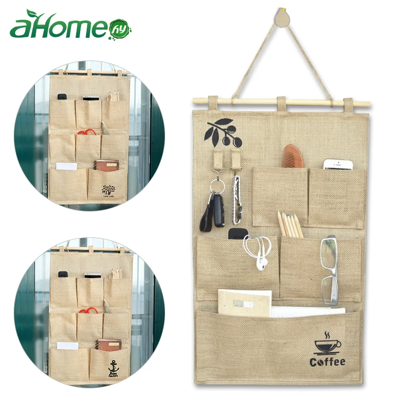 استعارات من الكتان حقيبة التخزين الطبيعي الجوت للماء جدار شنقا القطن الكتان تخزين ملابس مقسم حقيبة شعرية التخزين المنظم حقيبة