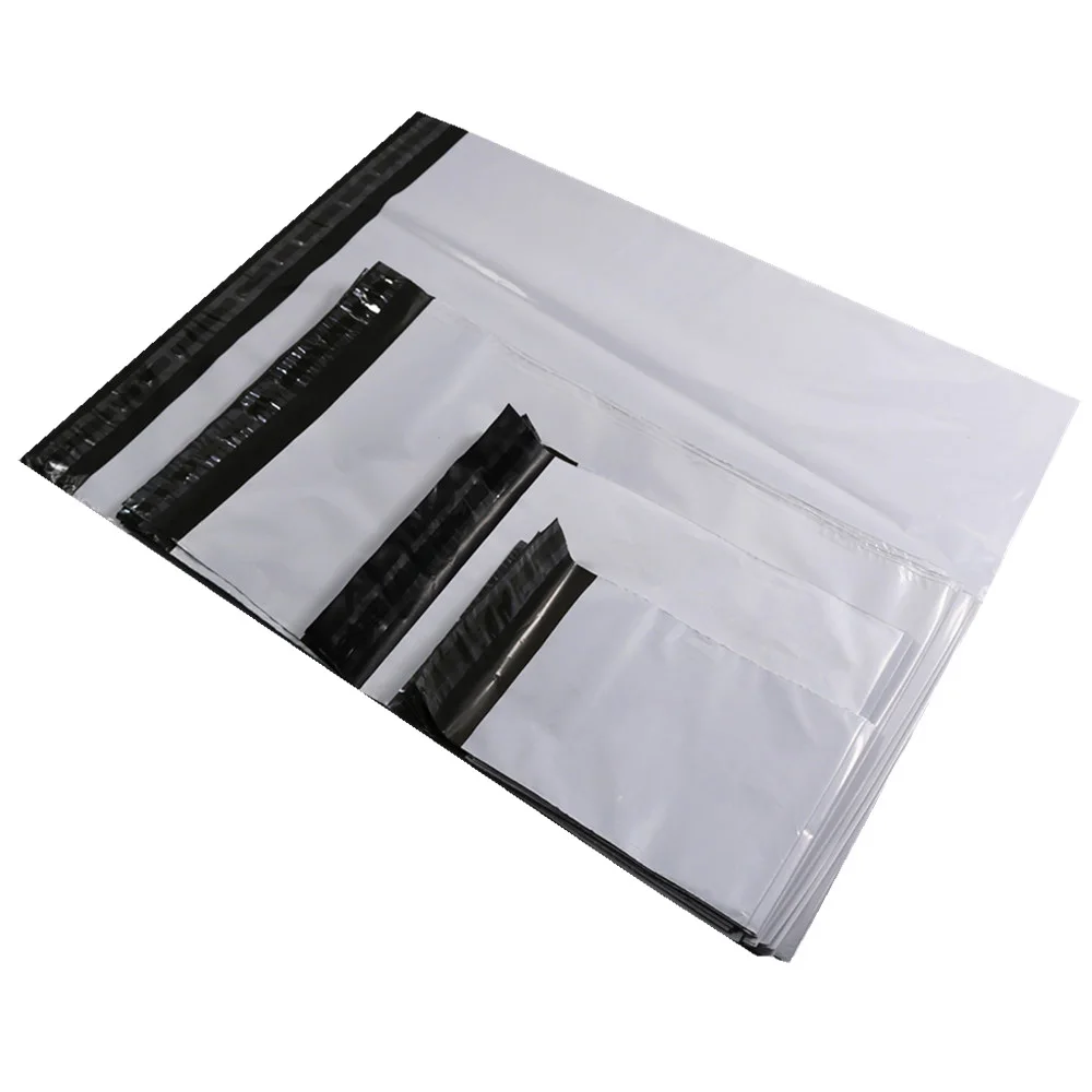صور من ساعي أكياس 10 قطعة رمادي الأبيض حقيبة التخزين البلاستيك بولي حقيبة شحن مغلف أكياس ارسال البريد الذاتي لاصق ختم كيس بلاستيك