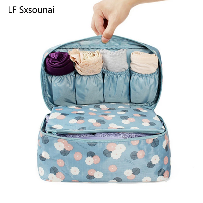 المنتجات ذات الصلة ل Storage Bags و Lf sxsounai الاكسسوارات النسائية الأزرق زهرة تخزين حقيبة السفر لل داخلية الملابس الداخلية الصدرية القماش الفن الحقيبة حقيبة حالة