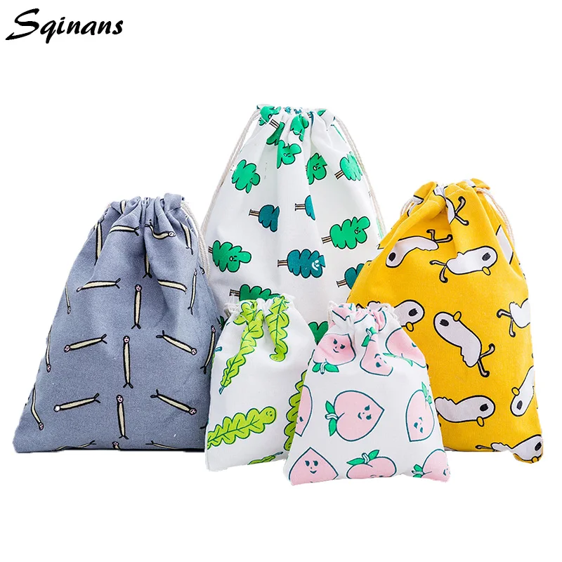 معلومات اضافية Sqinans نسيج القطن الرباط حمل حقيبة التخزين المحمولة المنظم حقيبة السفر لل داخلية اللعب تخزين حقيبة منظم