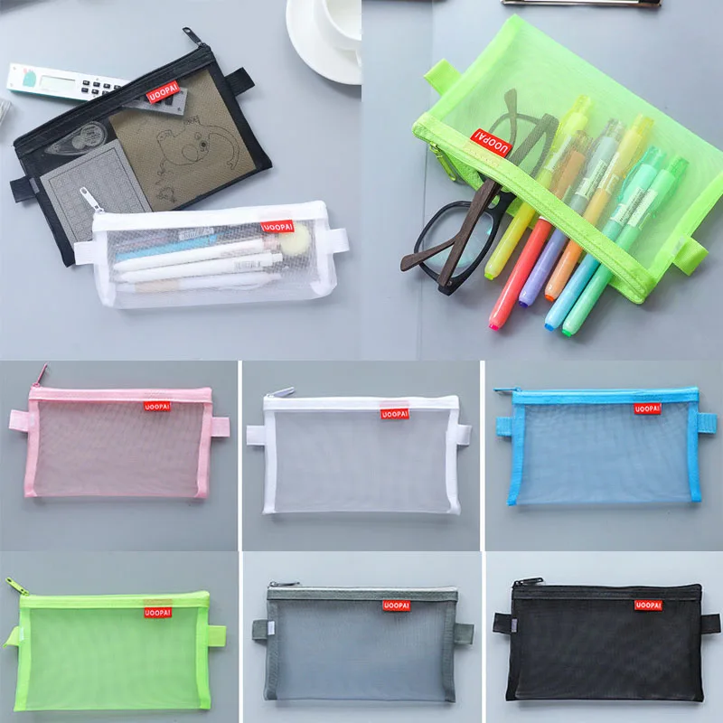 المنتجات ذات الصلة ل Storage Bags و بيع أحدث 1 قطعة بسيطة شاش شفاف حقيبة سفر لمستحضرات التجميل الحقيبة عالية الجودة شفافة مقلمة تخزين أكياس