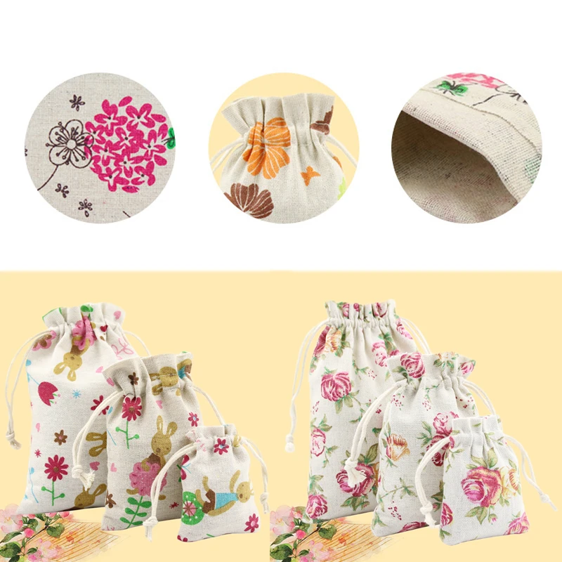 استعارات من حار 1 قطعة الزهور المطبوعة الخيش هدية الكريسماس أكياس الزفاف الإحسان حقيبة صغيرة برباط مفيدة مجوهرات حقيبة التخزين