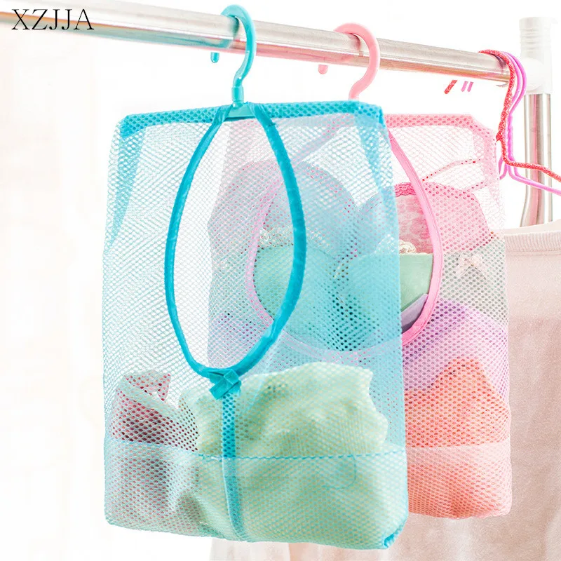 صور من XZJJA حقيبة تخزين قابلة للحمل الحمام الصابون منشفة الحطام استنزاف شبكة مقسم حقيبة شرفة الجوارب الملابس الداخلية تجفيف الملابس سلة